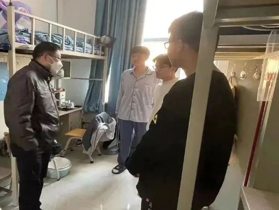 杨民书记、肖晞院长与辅导员单葆龙老师前往学生公寓进行走访工作。