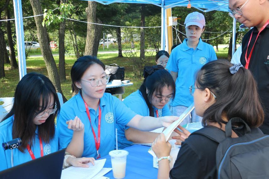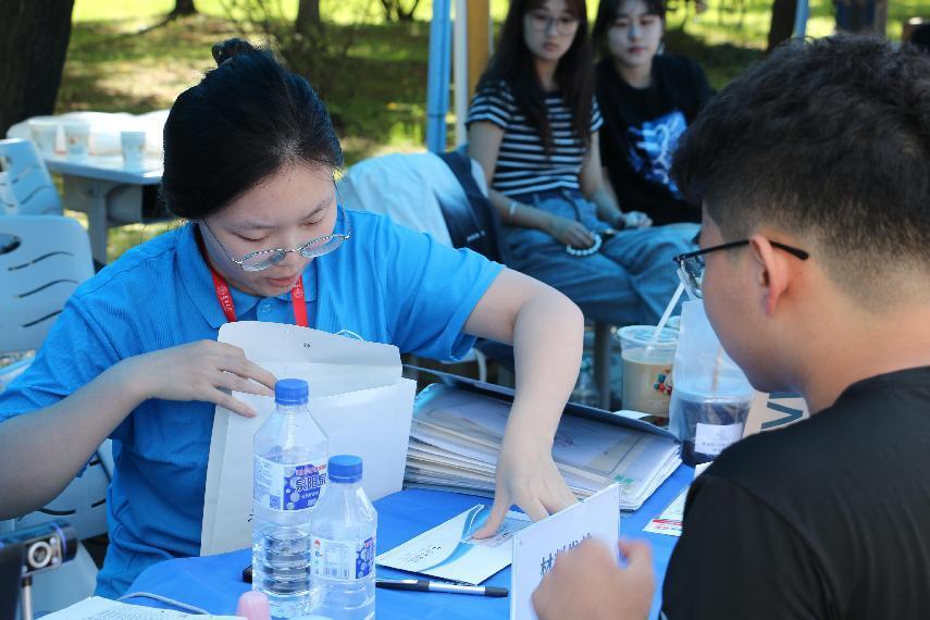 迎新工作人员于学院迎新工作站集合,他们分工明确、各司其职、通力协作,有条不紊地开展迎新前的准备工作,以最饱满的热情迎接新生的到来。