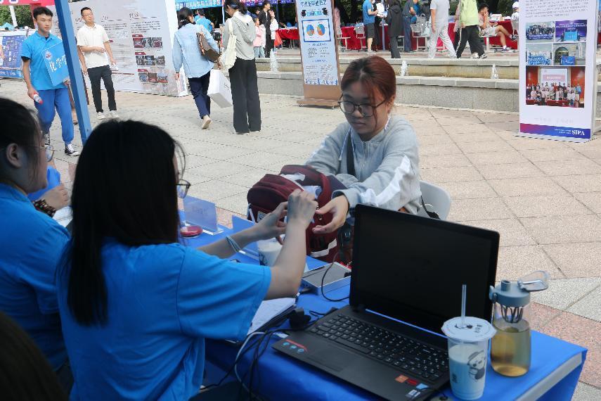 上午10点30分,校长张希院士莅临学院迎新站点,走访检查迎新工作,看望慰问迎新工作人员及志愿者并详细询问了迎新工作的进展状况。