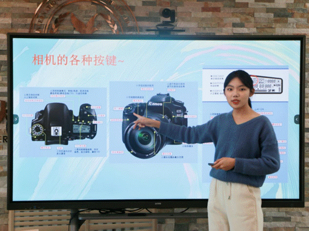 牛艺萱与同学们分享了摄影的相关技巧。她从摄影的基础知识入手,带领大家掌握相机的按键、屏幕参数和曝光三个基本要素。同时,她详细介绍了相机充电方法、照片导出流程及照片构图技术,帮助同学们对摄影相关功能有了初步掌握。她表示,摄影设备、自然光线、拍摄角度及后期的修图调色都是优质照片的关键构成要素,鼓舞大家以练促学,在日后实践中打造精美作品。