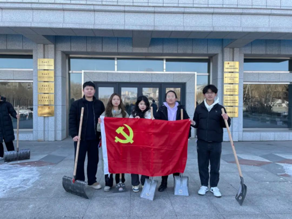 组织展开志愿扫雪活动。同学们热情高涨,手持铁锹、扫帚等工具,铲雪除冰,清扫路面,践行“不怕苦、不怕累”的精神,为共创美丽校园贡献力量。